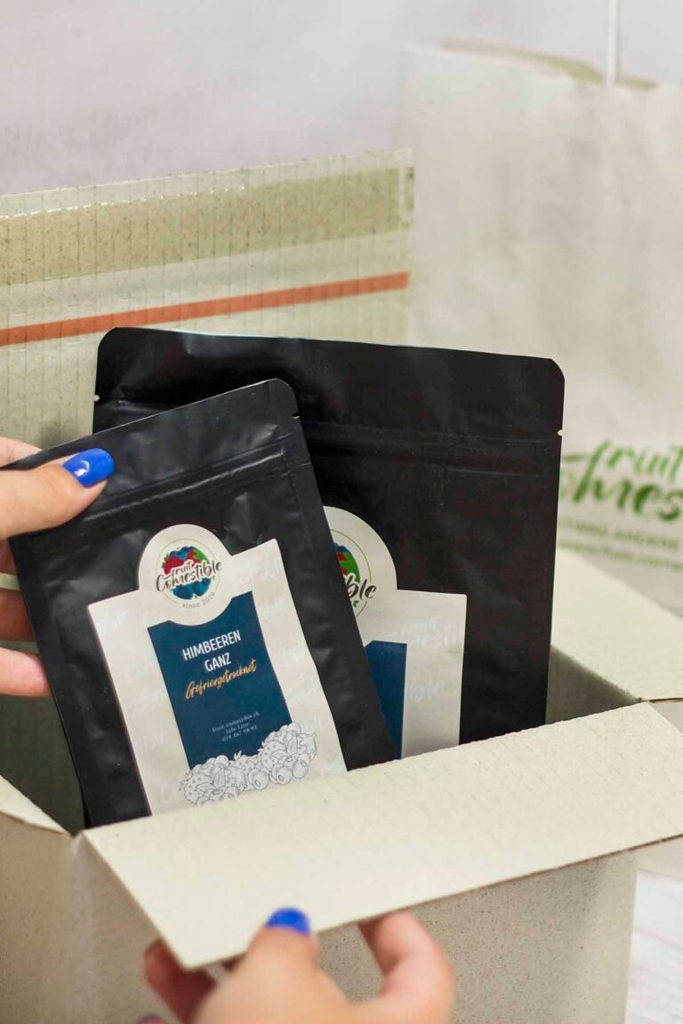 Gefriertrocknung ist die edelste Form der Konservierungsarten. Falsche oder gar schlechte Verpackung zerstört deinen Genussmoment. Die gefriergetrockneten Früchte, z.B. gefriergetrocknete Himbeeren können gummig und blass werden. Willst du das? Wir wollen das definitiv nicht.