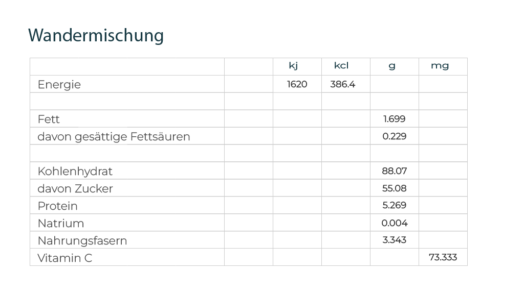 Bei Freizeitaktivitäten und Sport benötigt jeder Nährstoffe, um die Leistung zu erhalten. Die Wandermischung ist darauf ausgerichtet.